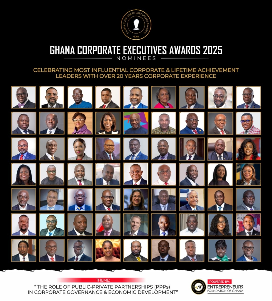 The Entrepreneurs Foundation of Ghana (EFG) has opened nominations to honour Ghana’s Most Influential Corporate Executives of the Decade at the Ghana Corporate Executives Awards Gala Dinner 2025. The event will recognize exceptional and transformational leadership in corporate Ghana, with 15 to 20 years of corporate experience, as part of the 10th Anniversary Celebration of the corporate executives Champion of Champions decade Award. It is scheduled for November 2025 at the Movenpick Ambassador Hotel, under the theme: “The Role of Public-Private Partnerships (PPPs) in Corporate Governance and Economic Development”.